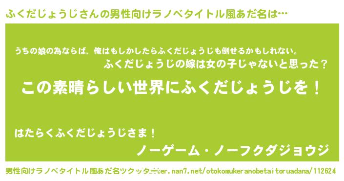 | 女子向けラノベタイトル風あだ名 | 『乙女ゲームの破滅フラグしかない悪役ふくだじょうじに転生してしまった…』 |