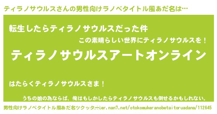 | 女子向けラノベタイトル風あだ名 | 『ティラノサウルス姫と円卓の騎士』 |
