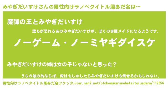 | 女子向けラノベタイトル風あだ名 | 『みやぎだいすけ恋絵巻』 |