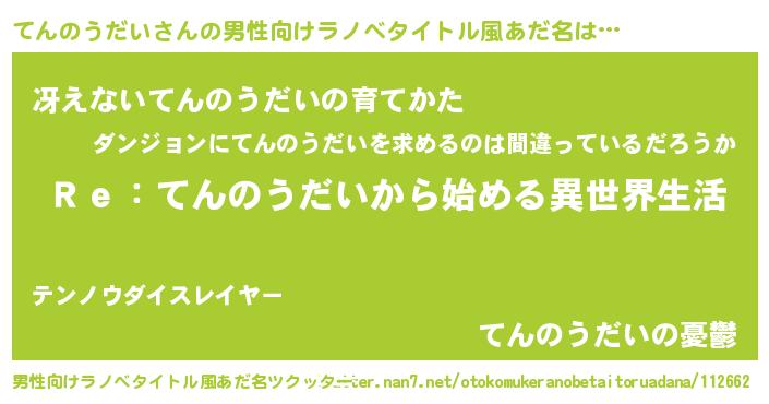 | ヒーロー風カッコイイあだ名 | 『最強戦士テンノウダイ』『暗黒騎士テン』 |