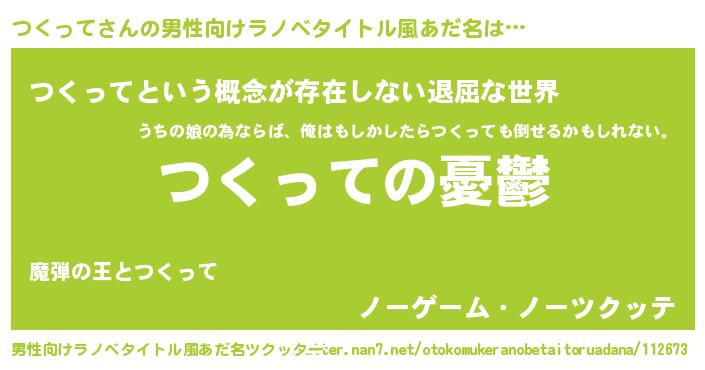 | 胡散臭い通販商品みたいなあだ名 | 『必ず成功する水晶球…その名も「つくって」』 |