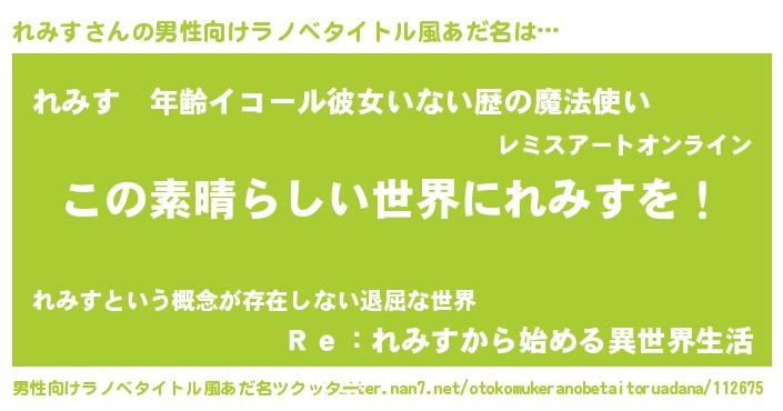| 胡散臭い通販商品みたいなあだ名 | 『あなたにだけ特別に提供する100年もののヴィンテージワイン…その名も「れみす」』 |