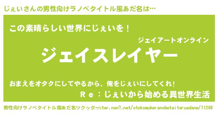 | ヘコむあだ名 | 『じぇにゅー』『じぇっちょ』 |