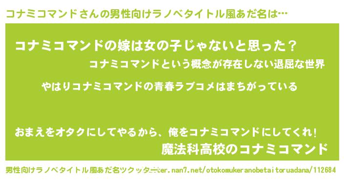 | 女子向けラノベタイトル風あだ名 | 『コナミコマンドの雑貨屋さん』 |
