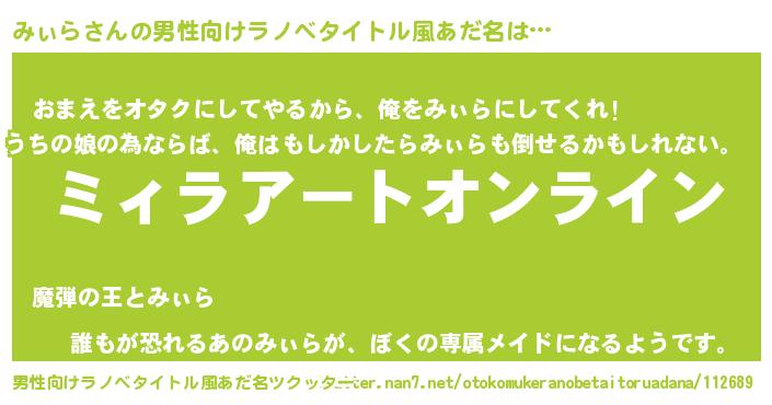 | ヘコむあだ名 | 『みぃにー』『みぃら(苦笑)』 |
