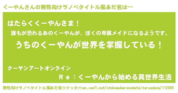 | 意味不明あだ名 | 『自称くーやん』『永久保存くーやん』 |