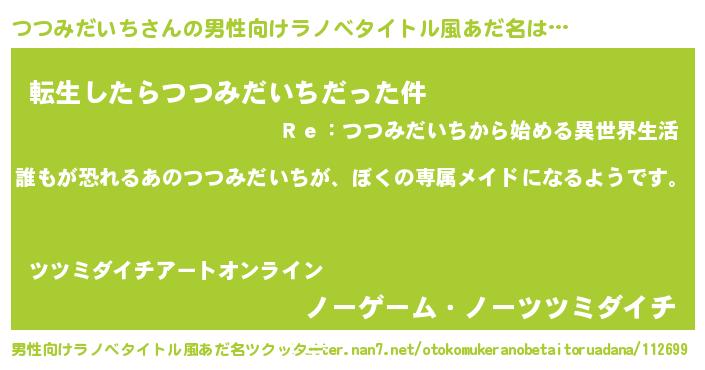 | 女子向けラノベタイトル風あだ名 | 『つつみだいちの契約王妃』 |