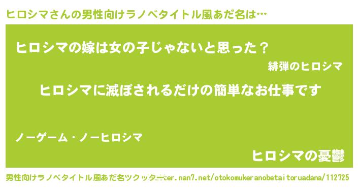 | 女子向けラノベタイトル風あだ名 | 『横柄ヒロシマと宰相陛下』 |