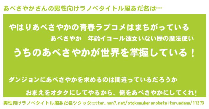 あべさやかさんの男性向けラノベタイトル風あだ名をツクッター!
