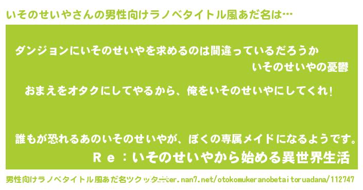 | 胡散臭い通販商品みたいなあだ名 | 『100人中100人が認めたイリジウム磁石…その名も「いそのせいや」』 |