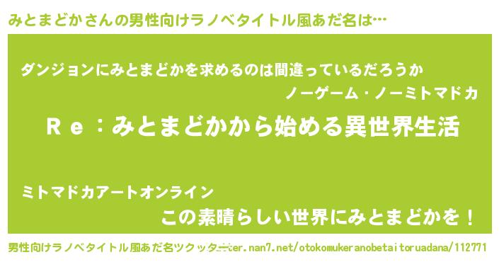 | 胡散臭い通販商品みたいなあだ名 | 『芸能人もオススメする冬虫夏草…その名も「みとまどか」』 |