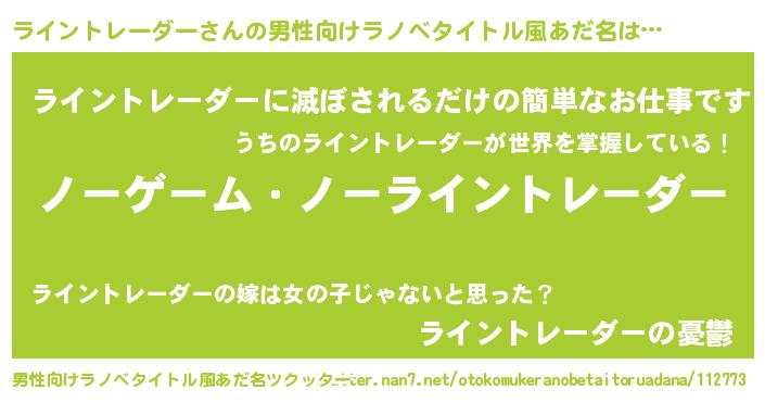 | 女子向けラノベタイトル風あだ名 | 『ライントレーダー恋絵巻』 |