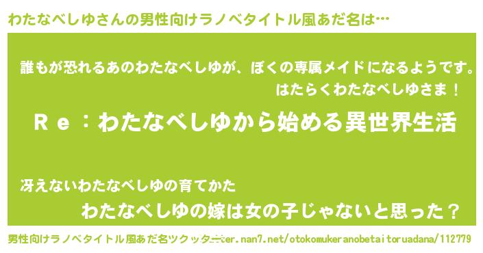 | 女子向けラノベタイトル風あだ名 | 『闇のわたなべしゆ』 |