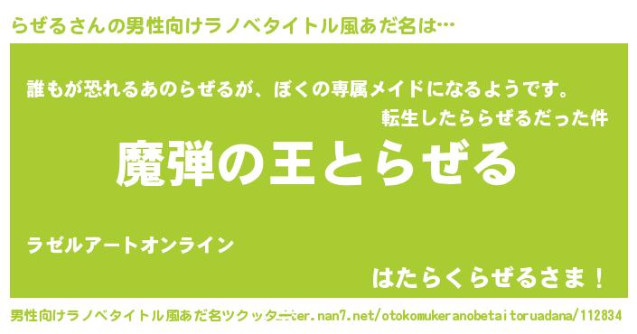 | 女子向けラノベタイトル風あだ名 | 『乙女ゲームの破滅フラグしかない悪役らぜるに転生してしまった…』 |
