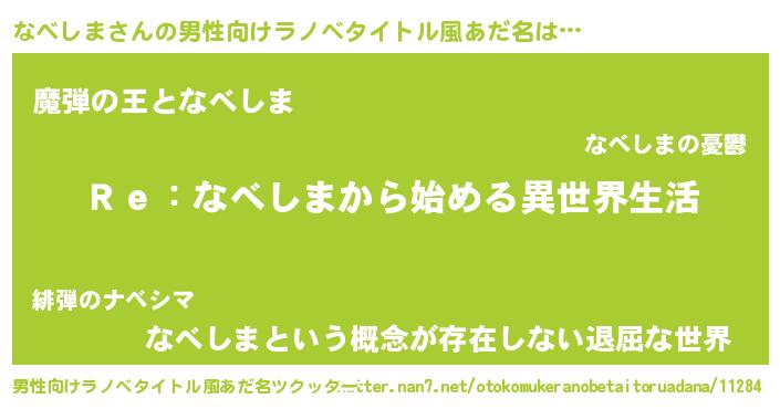 | 意味不明あだ名 | 『自称なべしま』『永久保存なべしま』 |