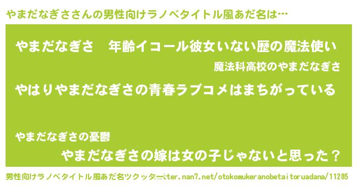 | 女子向けラノベタイトル風あだ名 | 『やまだなぎさの雑貨屋さん』 |