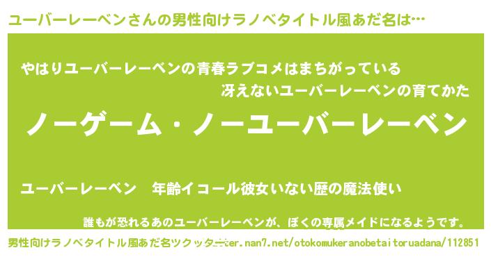 | 女子向けラノベタイトル風あだ名 | 『死神ユーバーレーベンの再婚』 |