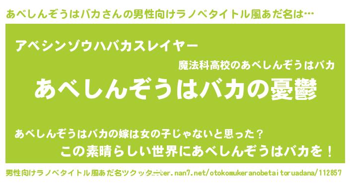 | 女子向けラノベタイトル風あだ名 | 『(仮)あべしんぞうはバカのやんごとなき事情』 |