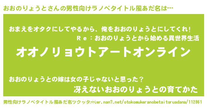 | 女子向けラノベタイトル風あだ名 | 『おおのりょうと姫と円卓の騎士』 |