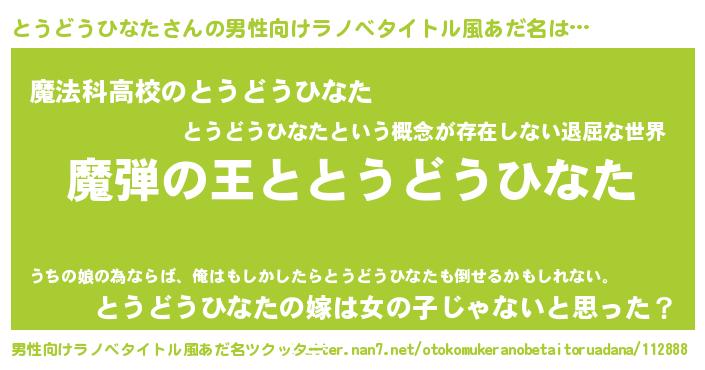 | 胡散臭い通販商品みたいなあだ名 | 『ハリウッド女優が絶賛した100年もののヴィンテージワイン…その名も「とうどうひなた」』 |