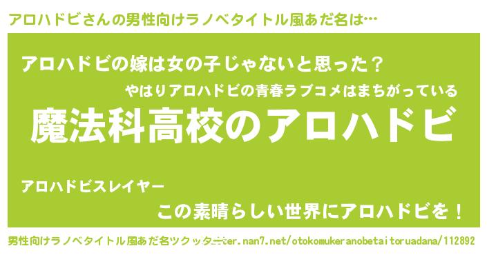 | 女子向けラノベタイトル風あだ名 | 『アロハドビなんてお断りですっ。』 |