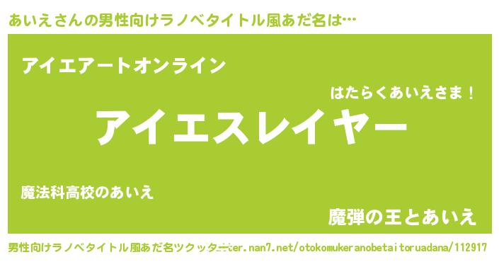| 肩書あだ名 | 『あいえ中将』『あいえCEO』 |