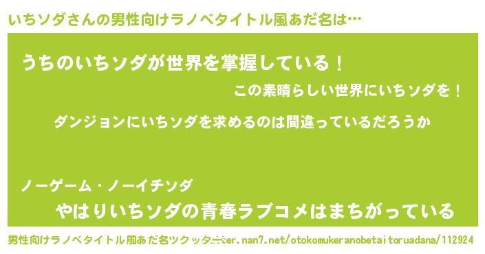 | 女子向けラノベタイトル風あだ名 | 『いちソダは平凡を望む』 |