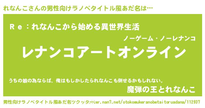 | 意味不明あだ名 | 『ペロリンれなんこ』『自称れなんこ』 |