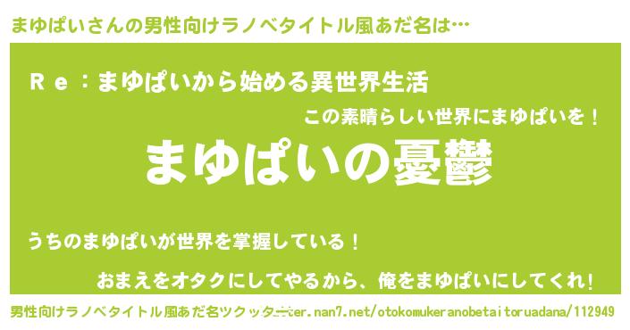 | 女子向けラノベタイトル風あだ名 | 『(仮)まゆぱいのやんごとなき事情』 |