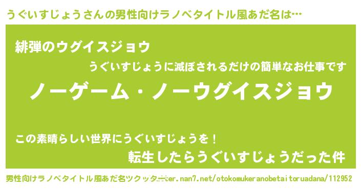 うぐいすじょうさんの男性向けラノベタイトル風あだ名をツクッター!