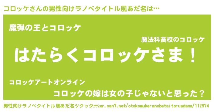 | 意味不明あだ名 | 『住所不定無職コロッケ(81歳)』 |