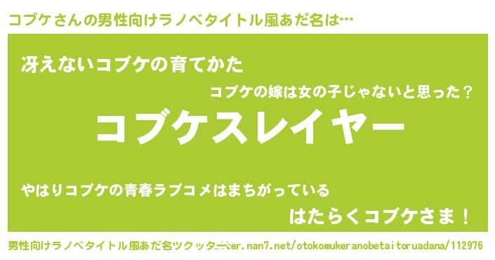| 意味不明あだ名 | 『めかぶ科コブケ属』『永久保存コブケ』 |