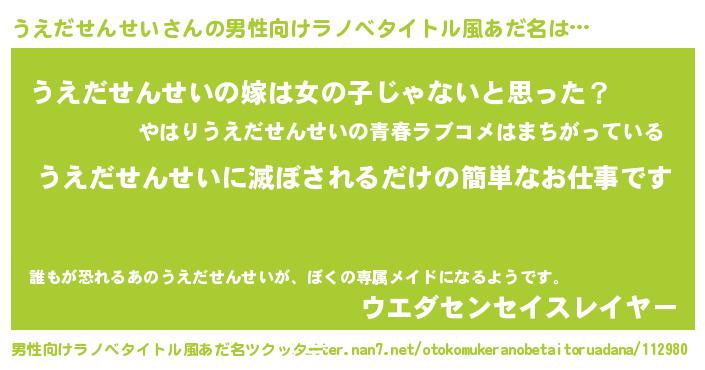 | 意味不明あだ名 | 『とにかく怪しいうえだせんせい』 |