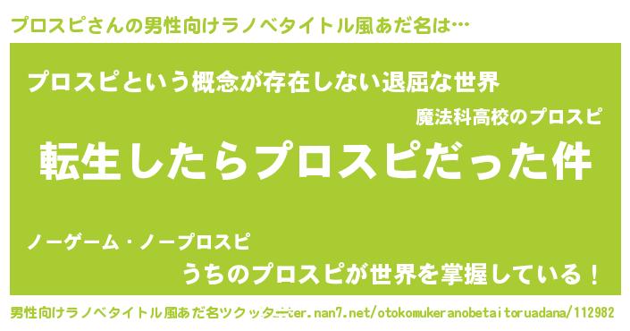 | 胡散臭い通販商品みたいなあだ名 | 『来世でも幸せになれる健康食品…その名も「プロスピ」』 |