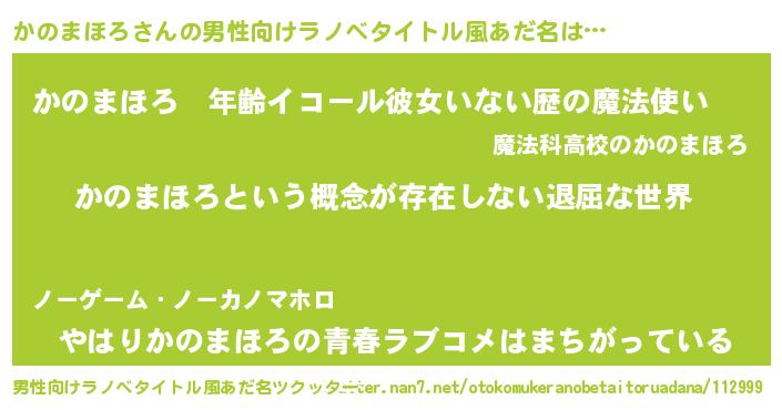 | 意味不明あだ名 | 『永久保存かのまほろ』『自称かのまほろ』 |