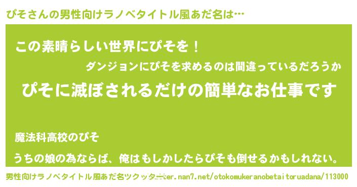 | 胡散臭い通販商品みたいなあだ名 | 『あなたにだけ特別に提供する限定10本のレアな日本酒…その名も「ぴそ」』 |
