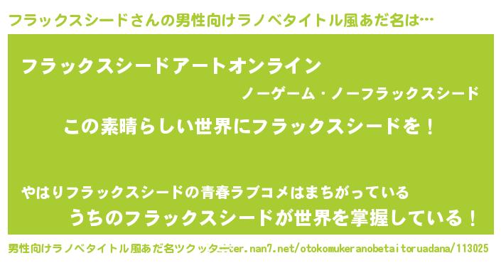 | 女子向けラノベタイトル風あだ名 | 『悪役フラックスシードに転生したようですが、知った事ではありません』 |