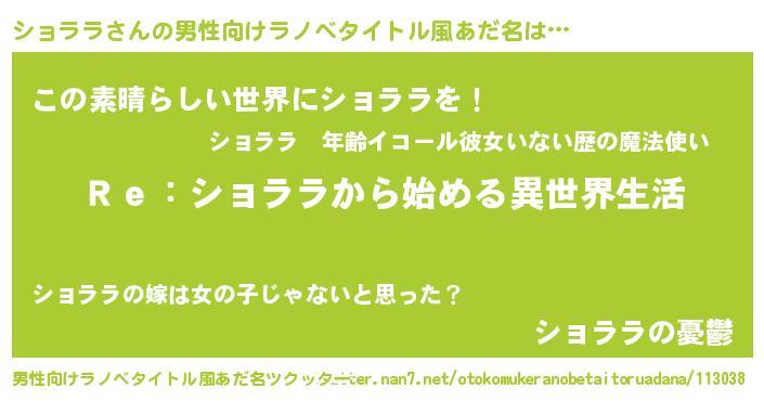 | 胡散臭い通販商品みたいなあだ名 | 『テレビで話題の高麗人参…その名も「ショララ」』 |