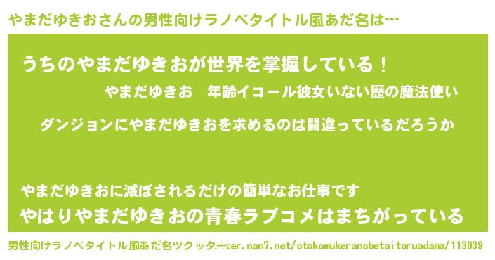 | 女子向けラノベタイトル風あだ名 | 『やまだゆきおの卵を拾いまして』 |