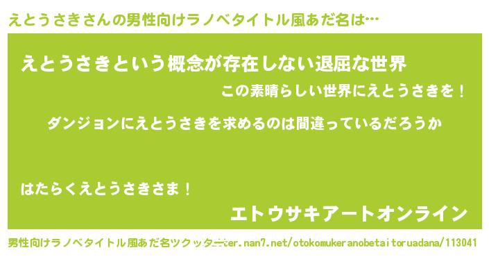 えとうさきさんの男性向けラノベタイトル風あだ名をツクッター!