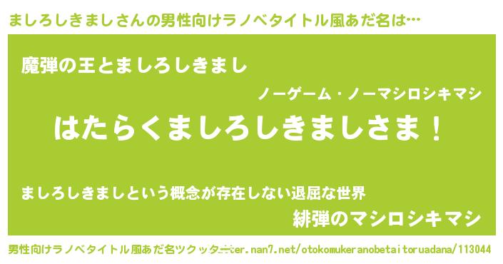 | 意味不明あだ名 | 『住所不定無職ましろしきまし(9歳)』 |