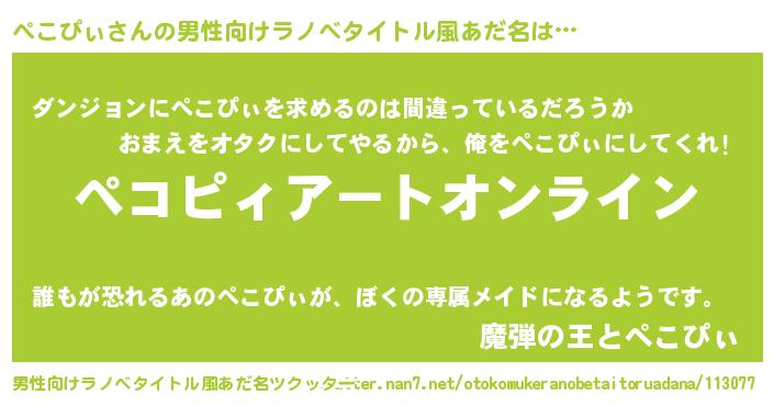 | 胡散臭い通販商品みたいなあだ名 | 『億万長者になれる霊験あらたかなお札…その名も「ぺこぴぃ」』 |