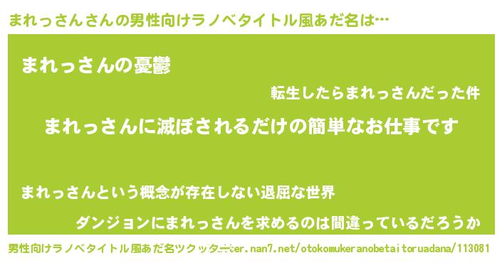 | 欧米人風あだ名 | 『アンジェラ・まれっさん』 |