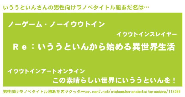 | 意味不明あだ名 | 『自称いううといん』 |