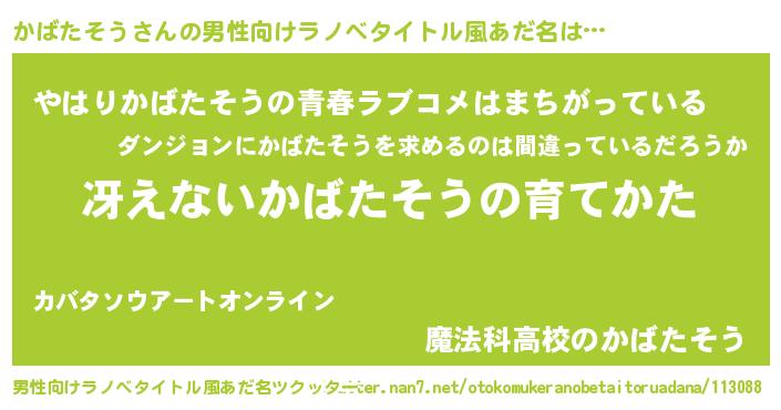 | 胡散臭い通販商品みたいなあだ名 | 『世界が平和になる高級そうな壺…その名も「かばたそう」』 |