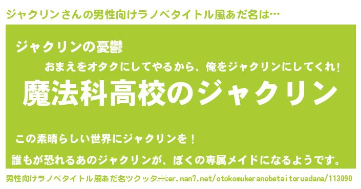 | ヘコむあだ名 | 『ジャふぇ~』『ジャクリン(笑)』 |