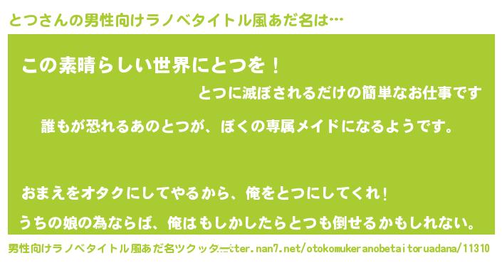 | 意味不明あだ名 | 『永久保存とつ』『住所不定無職とつ(65歳)』 |