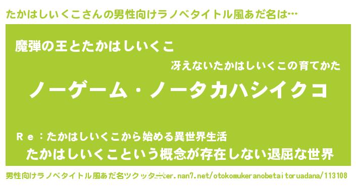 | 女子向けラノベタイトル風あだ名 | 『たかはしいくこ恋絵巻』 |