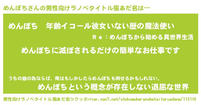 | 意味不明あだ名 | 『ヨモギ科めんぼち属』『自称めんぼち』 |