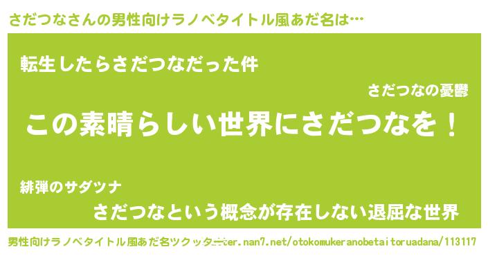 | 女子向けラノベタイトル風あだ名 | 『悪役さだつなに転生したようですが、知った事ではありません』 |